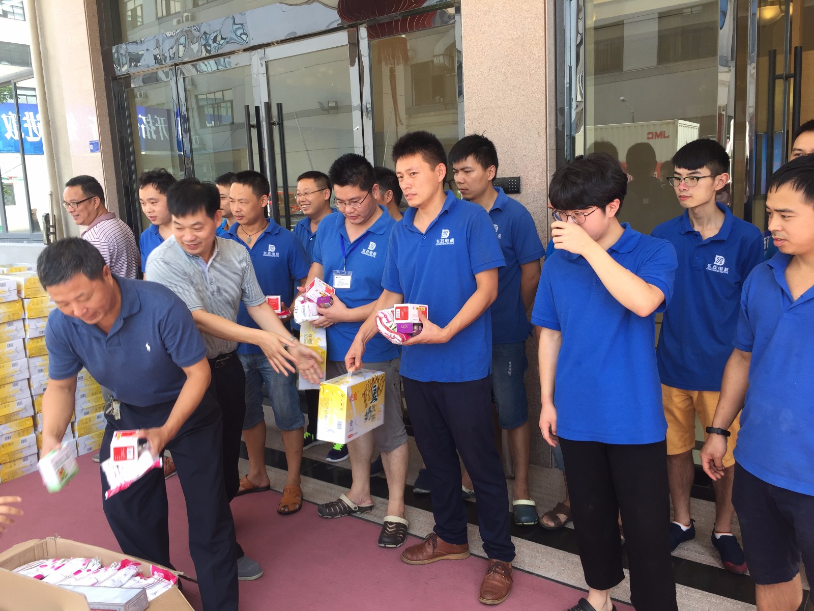 三伏天,高温酷暑。2017年8月3日上午,市总工一行送来清凉,关心关爱奋战在生产一线的员工。市领导对在酷暑的天气下仍然坚持工作表示感动,特别强调企业要合理安排生产一线员工作业时间,做好防暑降温、安全生产和饮食卫生工作,切实保障生产一线工作人员的利益和身心健康。